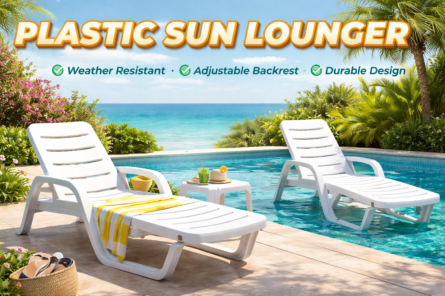 The plastic sun lounger is suitable for bulk wholesale and commercial use, supporting OEM customization (such as color, logo printing). It is lightweight and easy to move, and can be freely placed in outdoor spaces such as courtyards, poolside, and scenic spots, bringing a comfortable and convenient rest experience for users. It is an ideal outdoor leisure seating choice for commercial and home use.