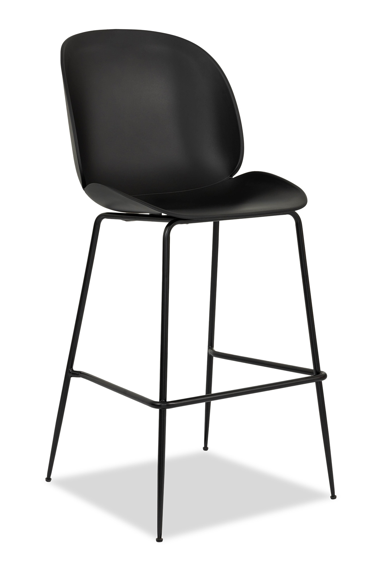 Elegantly crafted, the Black Plastic Beetle Bar Stool with Metal Feet exudes sophistication and style. Its counter height design offers a seamless blend of comfort and functionality. With a polypropylene seat, this stool boasts durability and easy maintenance. Complemented by sleek metal feet, it effortlessly elevates any space with its timeless allure.