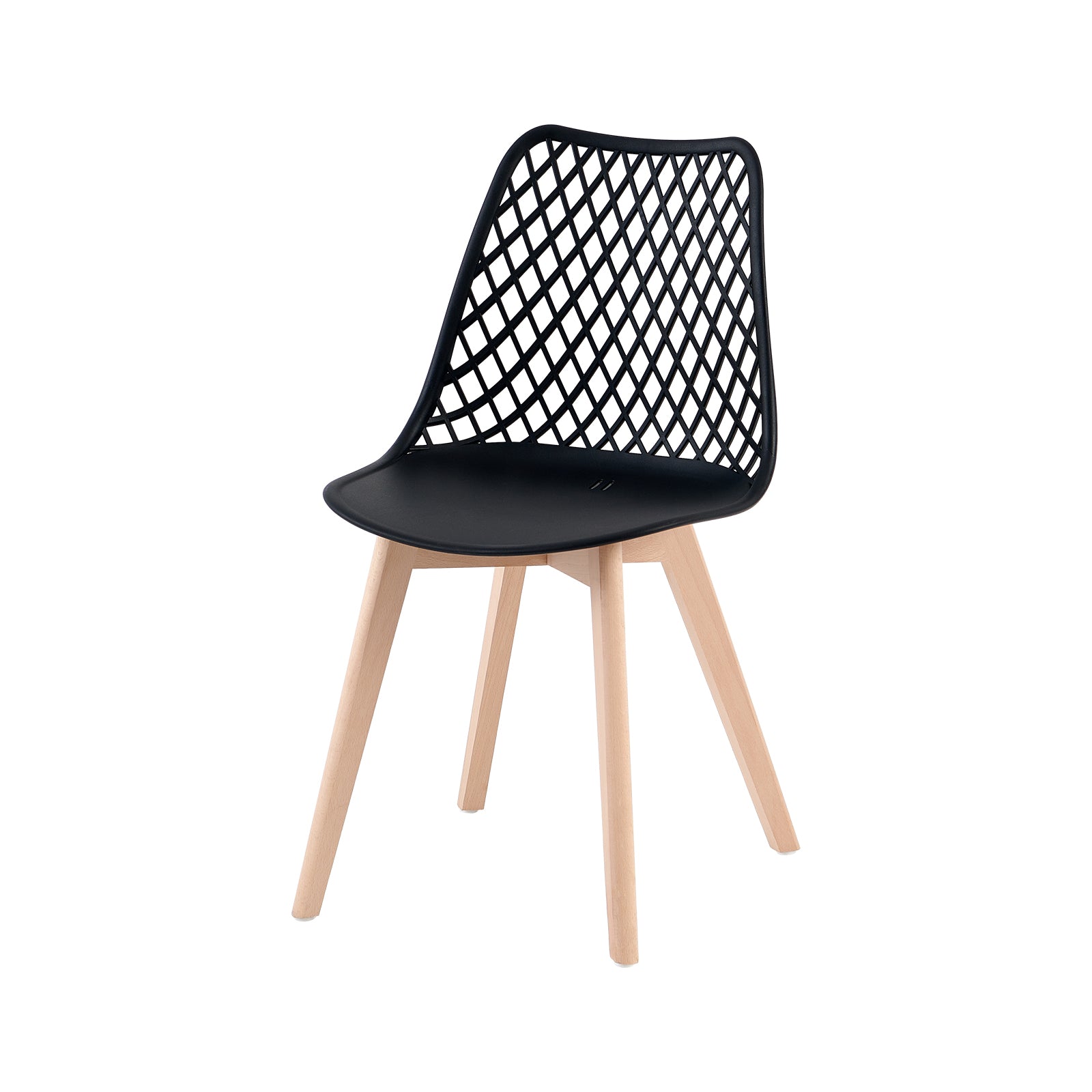 Crafted with precision and elegance, this impeccably designed Black Plastic Dining Chair with Wood Feet embodies modern sophistication. The polypropylene seat and beech wood feet come together seamlessly, creating a sleek and contemporary aesthetic. Perfect for dining spaces, kitchens, cafes, and restaurants, this chair effortlessly blends comfort and style, elevating any space it graces.
