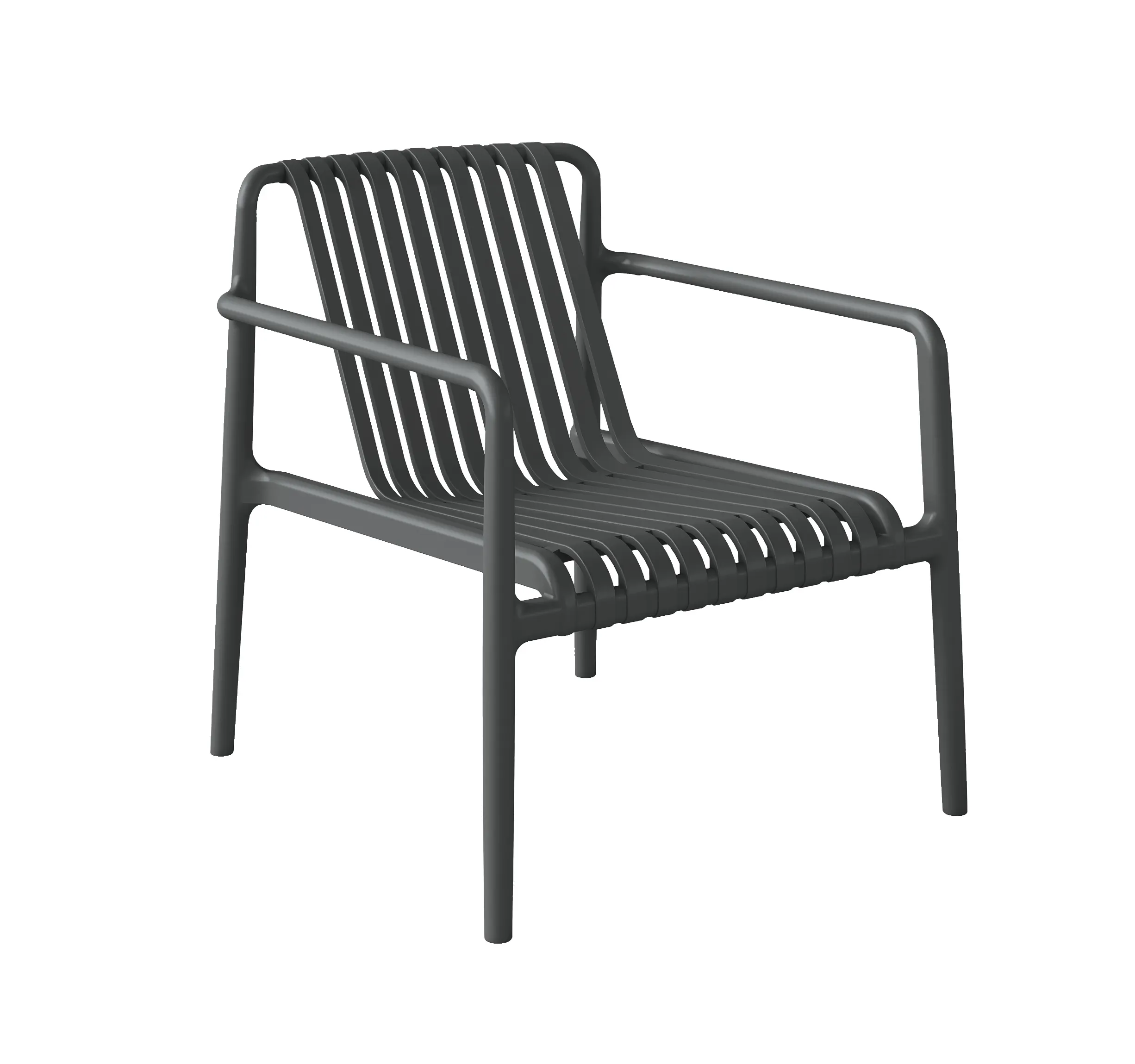 Crafted with durable dark grey polypropylene and fiberglass, this armchair offers sleek style and exceptional strength. Perfect for modern spaces, it provides comfort and reliability for everyday use. Elevate your decor with this versatile and sturdy piece.