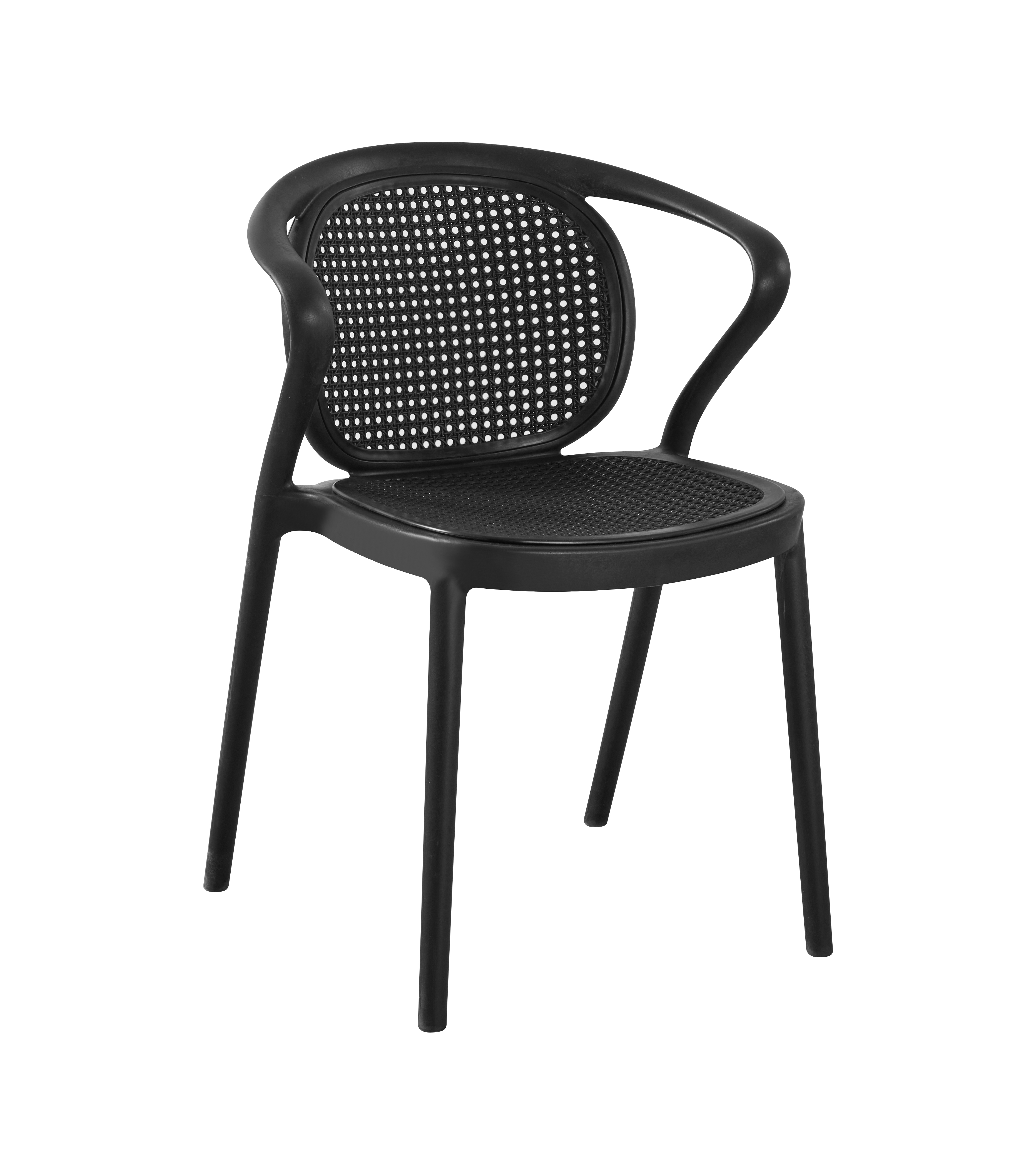 Enhance your space with our modern Black Polypropylene Armchair. Its sleek design, stackable nature, and hollow-out feature make it ideal for dining, cafes, kitchens, and restaurants. Built for both indoor and outdoor use, this armchair combines style and durability effortlessly. Update your surroundings with this versatile and contemporary seating solution.