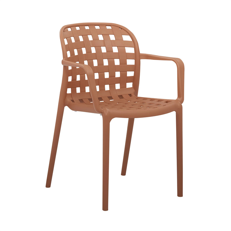 Experience sophistication and timeless elegance with our Brown Polypropylene Armchair. This stackable piece complements any dining area, whether it be in a kitchen, a café, or a restaurant. Crafted to withstand outdoor conditions, it is also a perfect addition to your garden. Meticulously crafted by a leading China manufacturer, this modern armchair offers exceptional quality at a wholesale price.