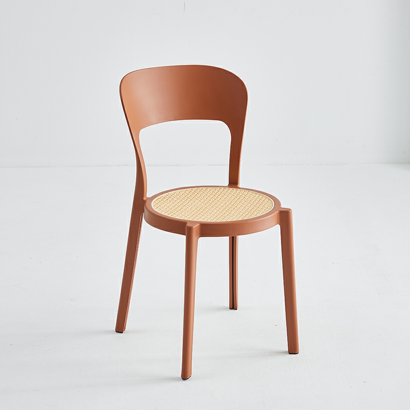 Enhance your space with our Brownish-Red Plastic Side Chair. Made with stackable polypropylene and fiberglass, this chair is perfect for dining, kitchen, cafe, restaurant, or outdoor use. The hollow design seat adds comfort and style, providing a sleek addition to any environment.