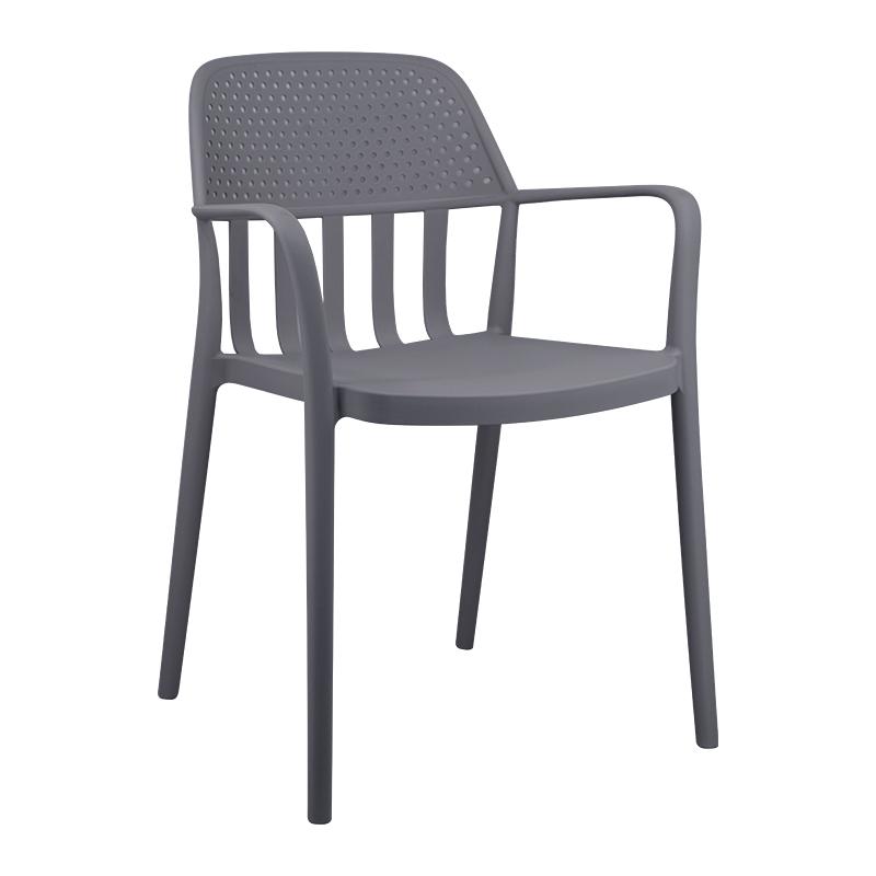 Introducing our premium Dark Gray Plastic Restaurant Chair with Armrests, engineered for demanding commercial environments. The deep charcoal hue conceals wear while complementing modern interior schemes. Built from industrial-strength polypropylene, this chair delivers exceptional durability without compromising comfort.