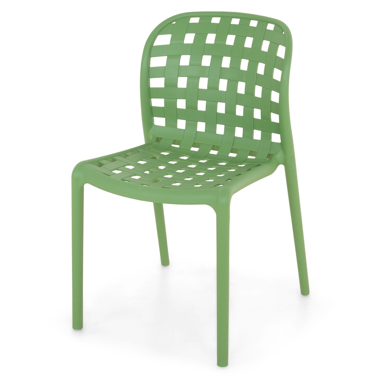 Exuding modern elegance, this stackable side chair embodies sleek sophistication. Crafted with green polypropylene, it seamlessly blends durability and style. Perfect for dining spaces, kitchens, cafes, restaurants, or outdoor gardens, this chair's versatility knows no bounds. Elevate your surroundings with this timeless statement piece and relish in its refined allure.