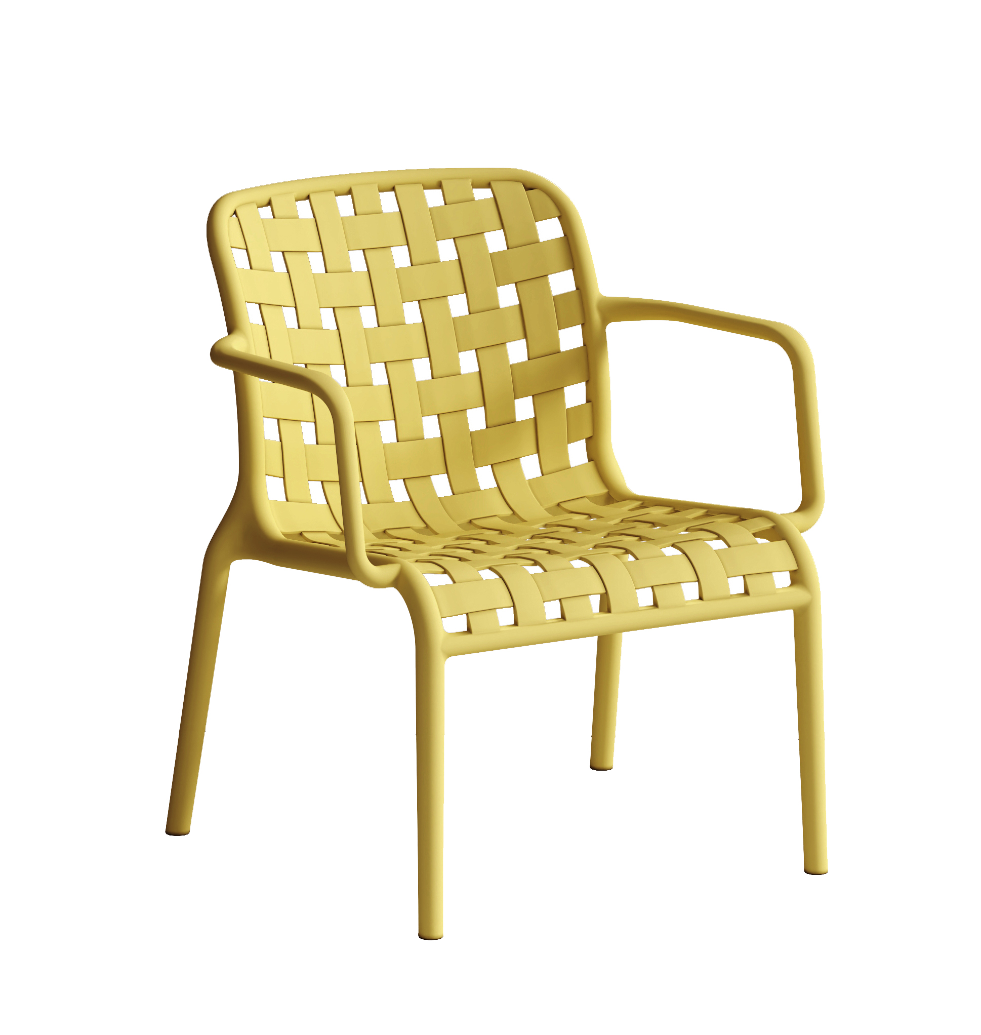 Brighten your outdoor space with this cheerful yellow lounge chair, featuring a breathable ventilated design that keeps you cool in warm weather. The ergonomic armrests and slightly reclined seat (15° angle) provide exceptional comfort, while the stackable design saves 75% storage space. Made from UV-resistant polypropylene, this durable chair withstands sun, rain, and temperature changes (-15°C to 60°C). Perfect for poolside lounging, beach clubs, and sunny patios, it supports 200kg with non-slip rubber feet for stability. The vibrant yellow color adds instant happiness to any outdoor setting.