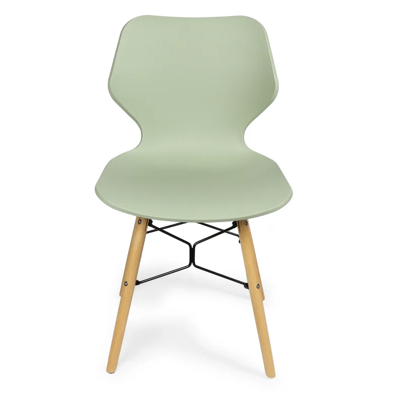 Crafted with elegance in mind, this remarkable dining chair blends style and practicality seamlessly. The exquisite mint green polypropylene seat exudes sophistication, while the sturdy wooden feet provide stability and durability. Designed to enhance your dining experience, this chair is a testament to impeccable taste and timeless luxury.