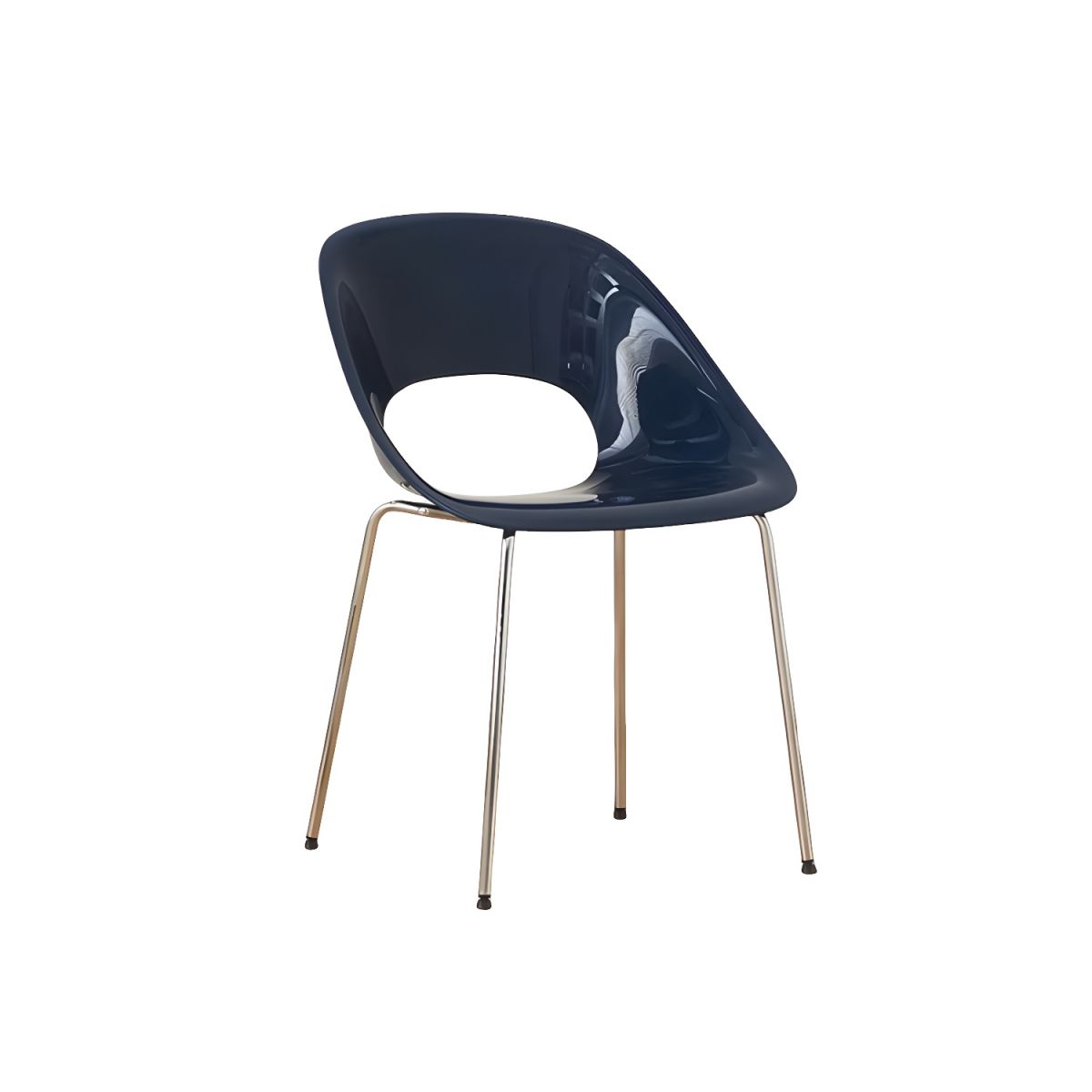 Upgrade your dining area with our modern and stylish Navy Blue Plastic Chair. Crafted from high-quality PC material, it offers durability and comfort for years to come. The elegant chromed metal feet add a sleek touch to any space, be it your kitchen, restaurant, cafe, or dining room.