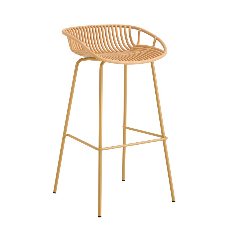 Elevate your ambiance with our exquisite Orange Short Backrest Plastic Bar Chair. Crafted with utmost precision, its lustrous polypropylene seat elegantly melds comfort with style. Resting atop sturdy metal feet, its counter height design adds a refined touch to any space. Experience the epitome of sophistication.