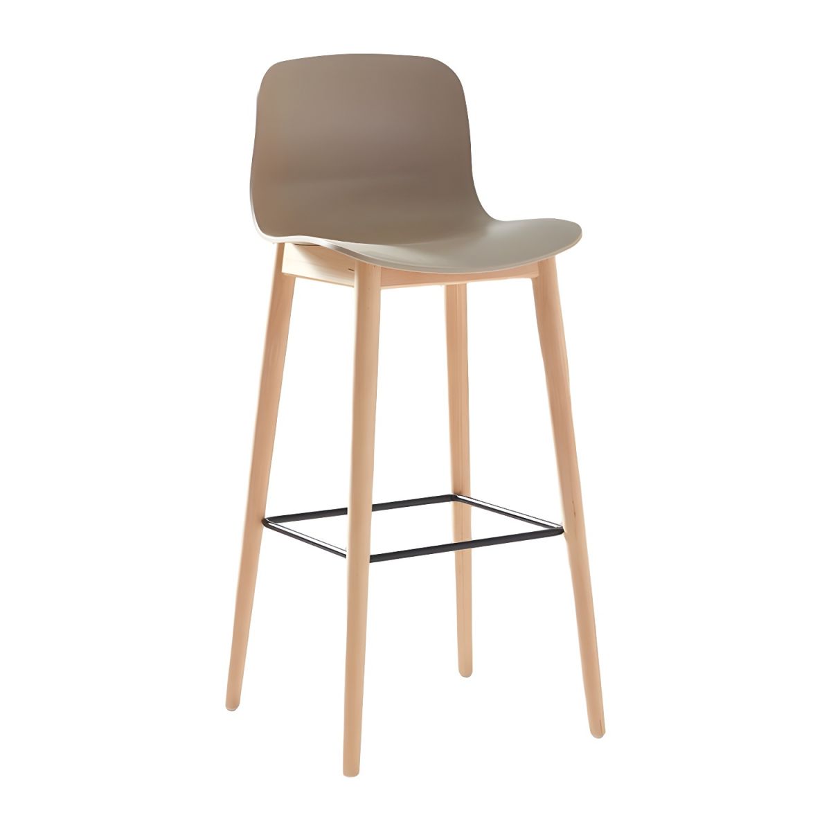Enhance your space with the sleek and contemporary Taupe Plastic Bar Stool. Crafted with a durable pp material seat, it boasts beech wood feet for added style and stability. Perfectly designed for modern settings, this counter height stool features a convenient footrest for optimal comfort. Elevate your decor with this chic and versatile addition to any bar or kitchen area.