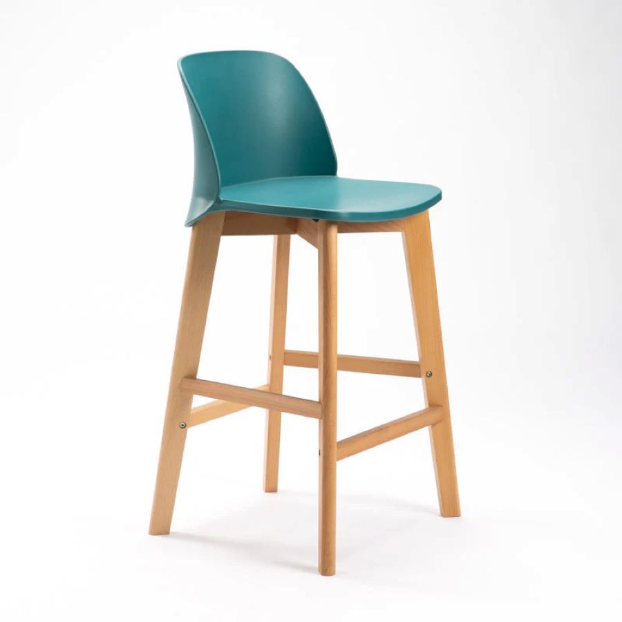 Enhance your space with our exquisite turquoise plastic bar stool. Crafted with a high-quality polypropylene seat and sturdy wood feet, it exudes elegance while providing utmost comfort. Perfect for any counter height area, this sleek and durable piece will elevate your decor, creating a stylish and inviting ambiance.