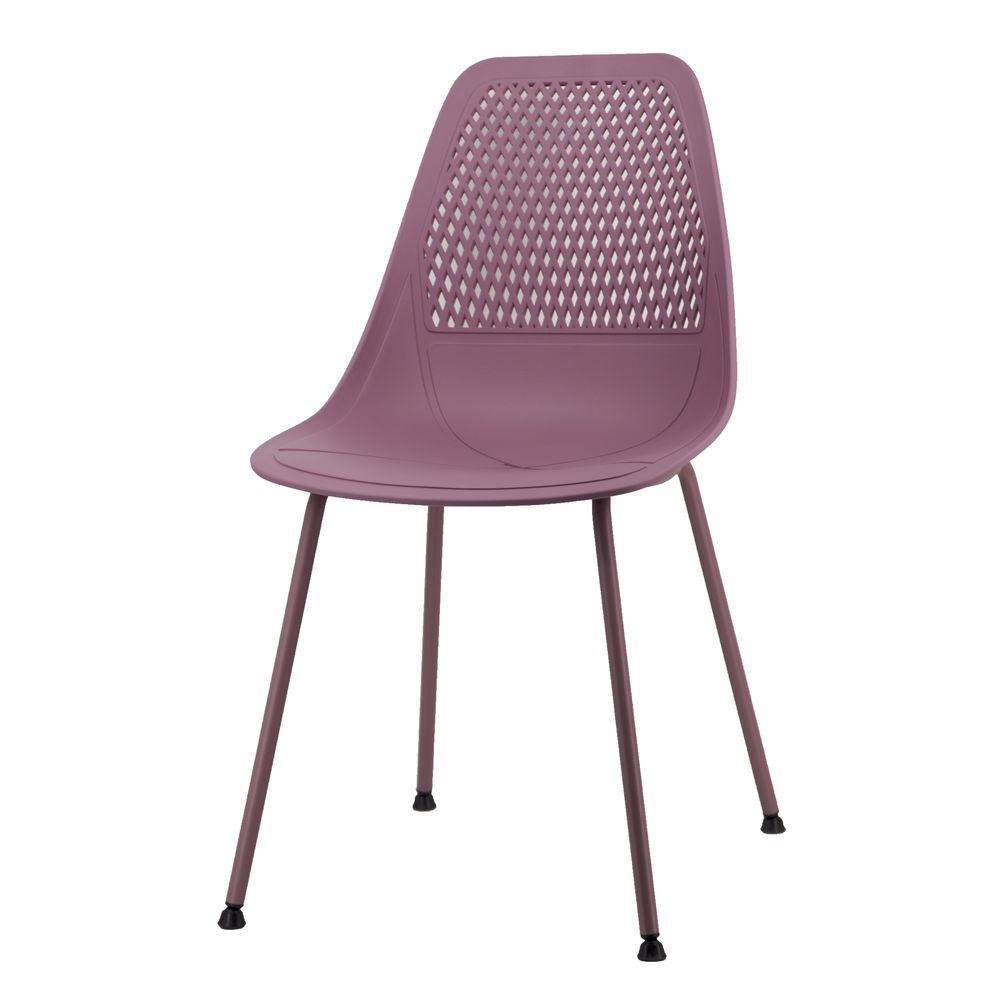 This stylish armless dining chair combines a vibrant violet plastic seat with sleek metal legs for a bold contemporary look. The high-quality polypropylene seat is scratch-resistant and waterproof, while the reinforced steel frame offers superior stability. Perfect for modern homes, cafés, and creative workspaces, this chair delivers ergonomic comfort with eye-catching style. Features quick, tool-free assembly and easy maintenance.
