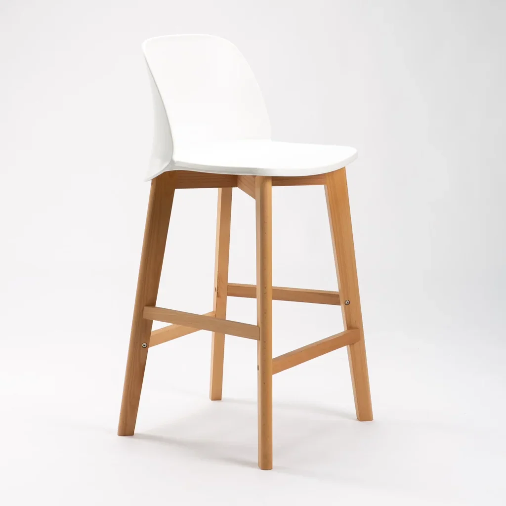 Enhance your space with our exquisite white plastic bar stool. Crafted with a high-quality polypropylene seat and sturdy wood feet, it exudes elegance while providing utmost comfort. Perfect for any counter height area, this sleek and durable piece will elevate your decor, creating a stylish and inviting ambiance.